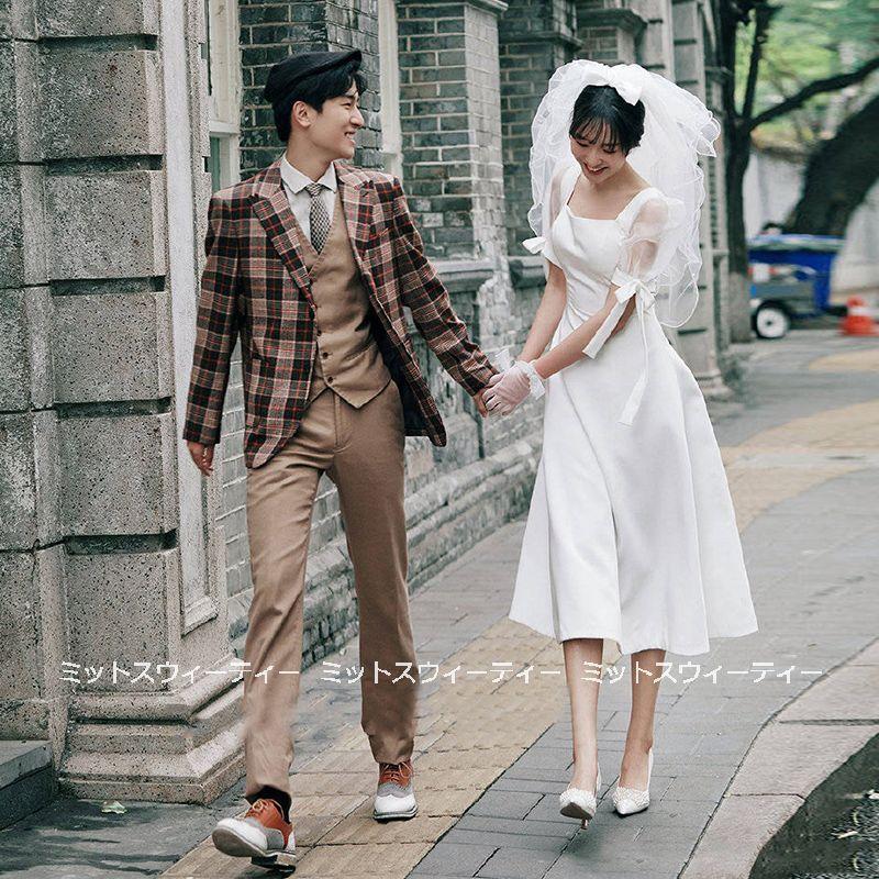 ウェディングドレス ウエディングドレス 膝下ドレス 結婚式 二次会 ワンピース スクエアネック 花嫁 前撮りドレス 披露宴 リゾート カジュアル お洒落 可愛い Wd590 ミットスウィーティー 通販 Yahoo ショッピング